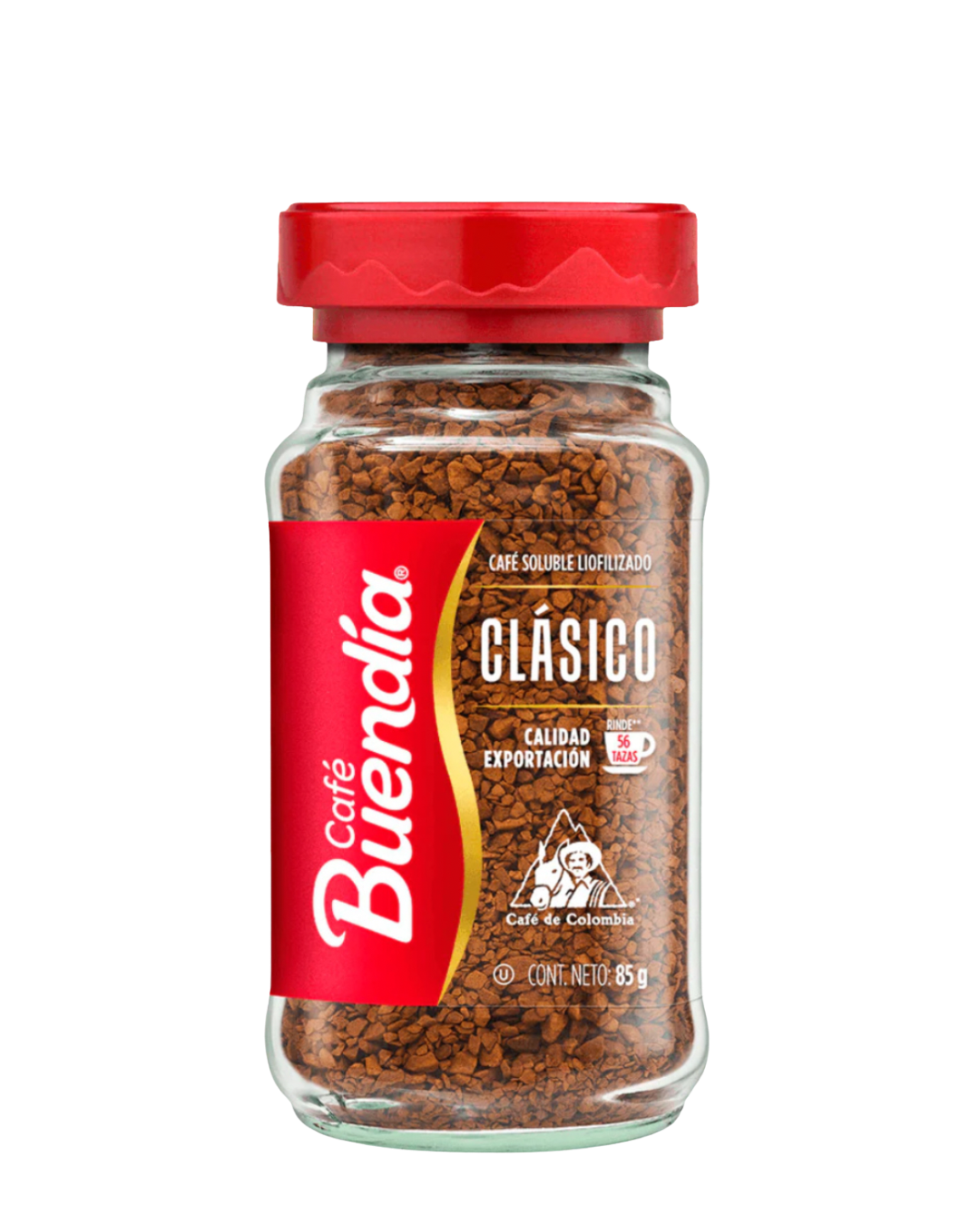 El Café Buendía Clásico es un café instantáneo liofilizado 100% colombiano, valorado por su sabor balanceado y aroma dulce frutal.