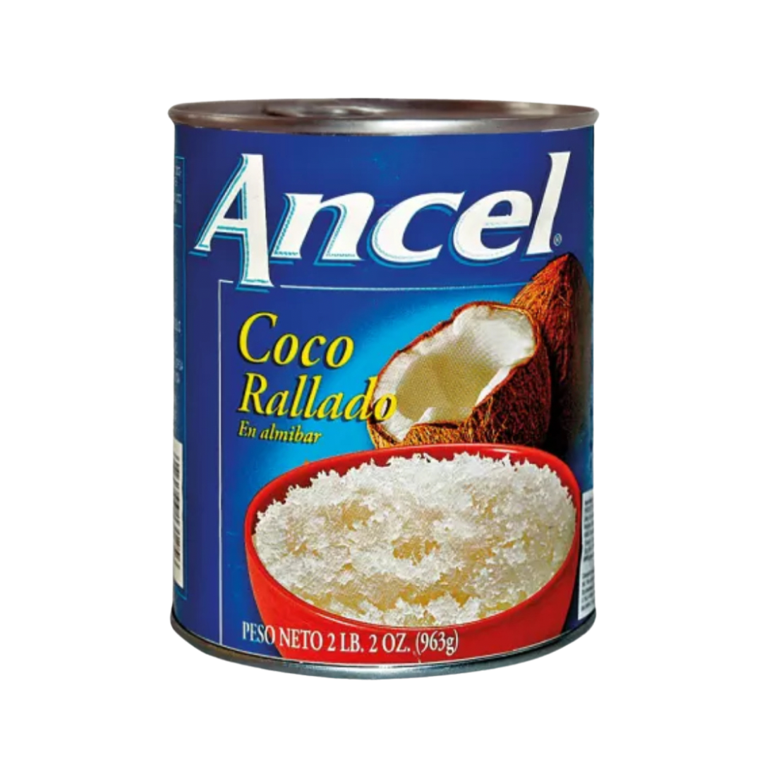 El coco en almíbar de Goya, bajo la marca Ancel, es coco rallado natural conservado en un almíbar suave, ideal para repostería y postre