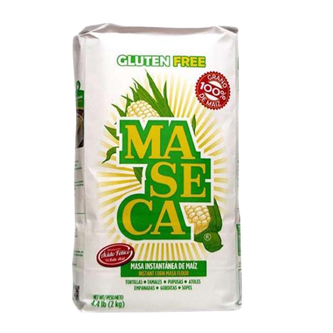 Harina de maíz Maseca 820g, especialmente para la elaboración de tortillas o tostadas de maíz, indispensable en la cocina de un mexicano o centroamericano.