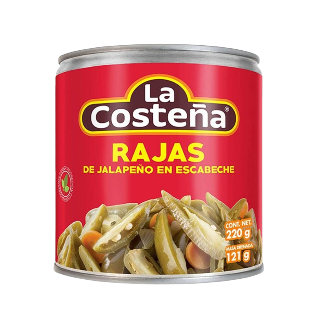 Jalapeños en tiras en escabeche para tostadas y tacos.